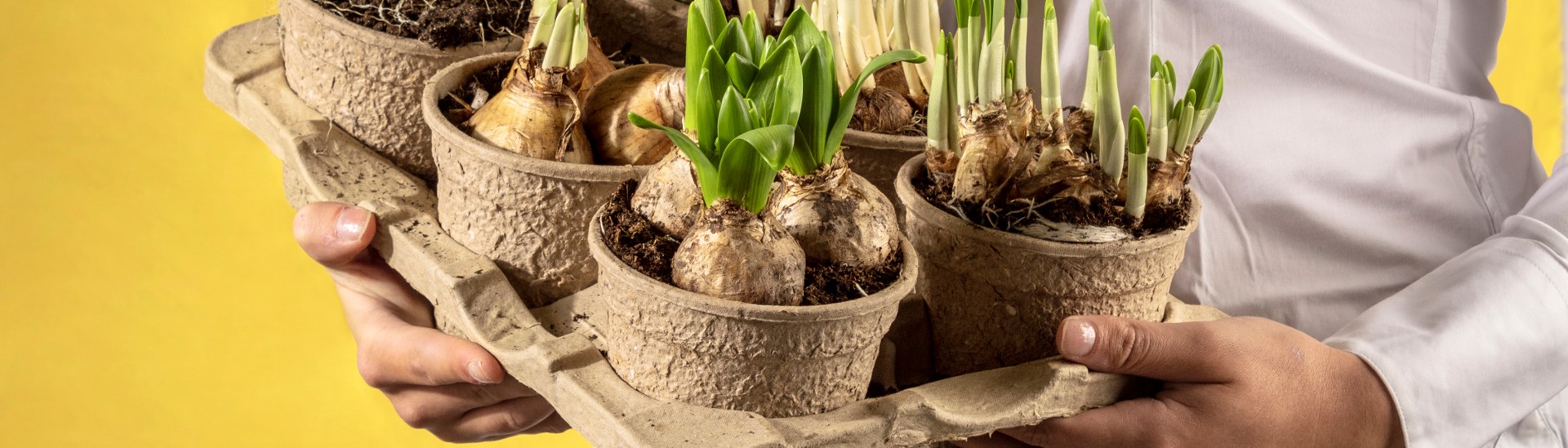 That’s why we’re happy to announce a brand new addition to our eco-friendly assortment: the new potted bulbs! Both the pot and tray are made from paper pulp. Our eco-friendly assortment is constantly growing with more products in sustainable packaging, so stay tuned!