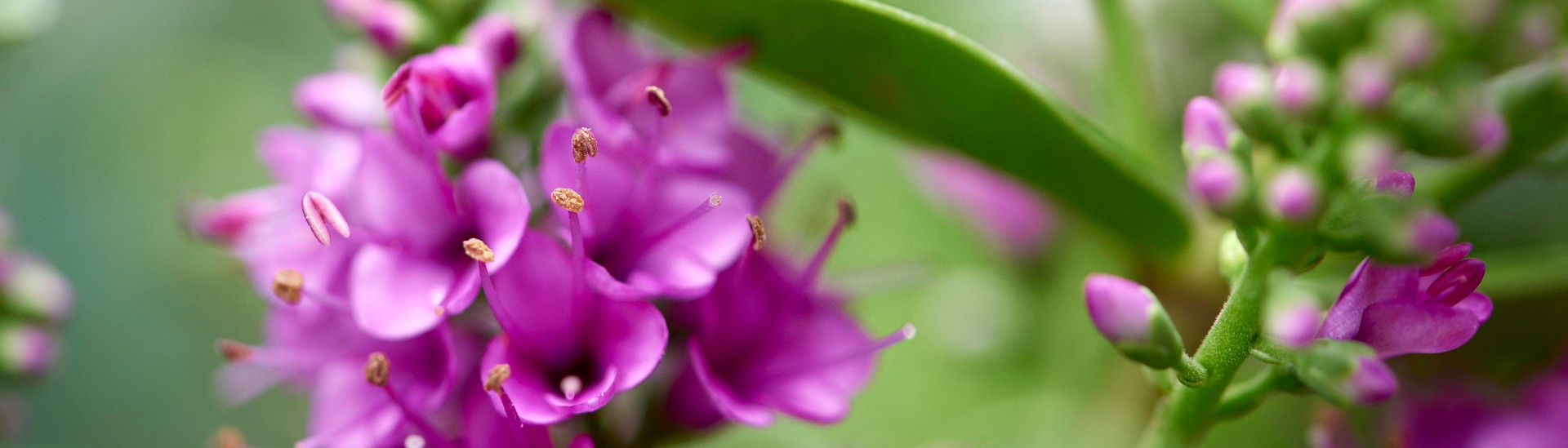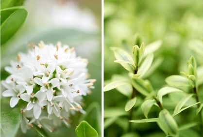 Witte, paarse, roze of lila bloemen brengen meteen nieuwe energie in het geheel en het blad van de Hebe varieert in kleur van lichtgroen tot donkergroen en heel lichtgrijs. In de winter en lente hebben sommige exemplaren zelfs paars-rood blad.