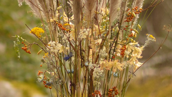 Sofie Danielsson har skapat ett arrangemang med naturliga material. Följ steg för steg för att se hur hon gjorde dessa arrangemang.